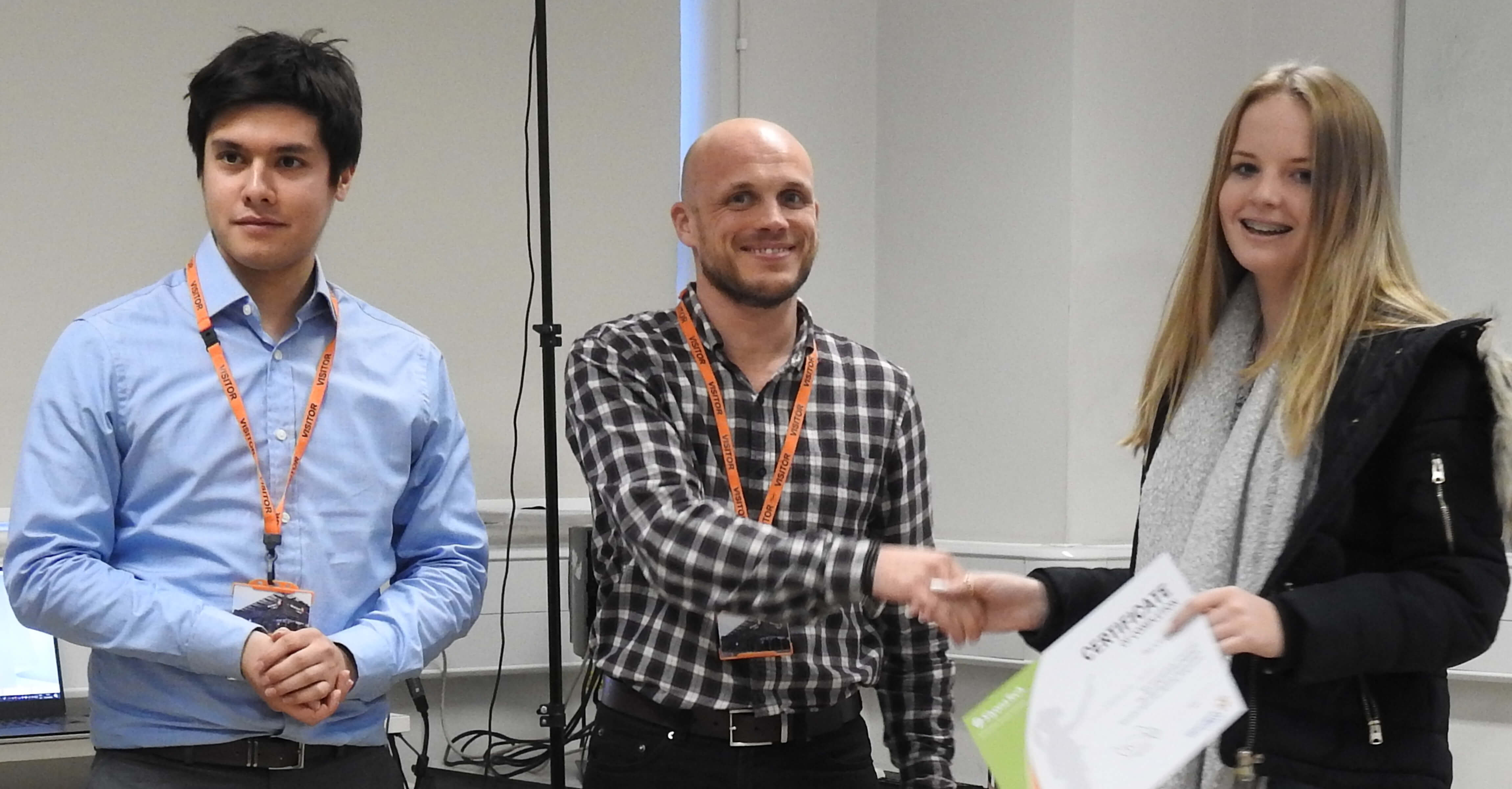 The SiyonaTech team made their second visit to West Herts College in Watford on the 19th November as part of the Virtual Reality trial for their Aircraft Cabin Fire-fighting programme. 13 students satisfactorily completed the Learning phase and then successfully gained a pass in the Assessment phase. Mr Adam Kenworthy (centre), Training Manager – Strategy & Projects at Easy Jet, was on hand to present their achievement certificates.