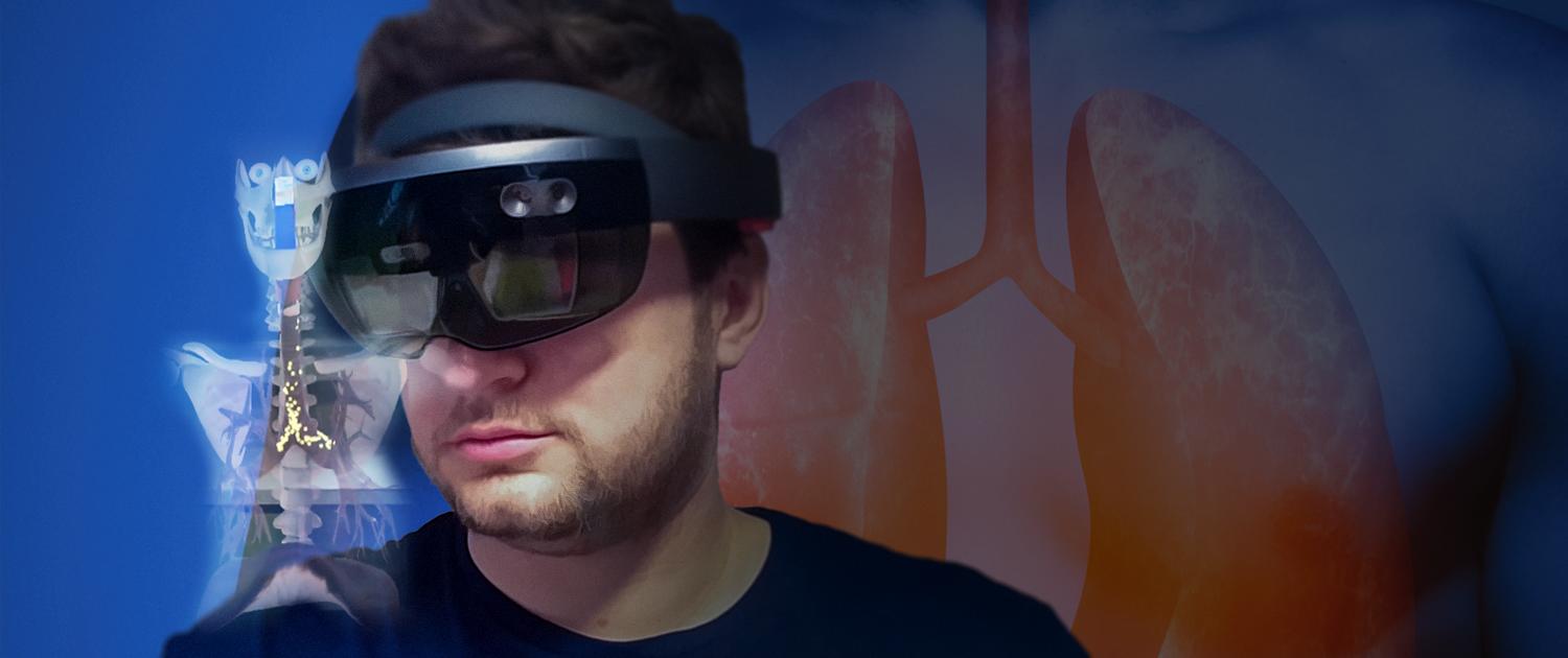 Using Hololens technology, a learner can bring up a 3D holographic image of a human body and simulate an asthma attack. The learner then is able to take a look inside the body – to understand what happens to the lungs during an attack and application of an inhalator.