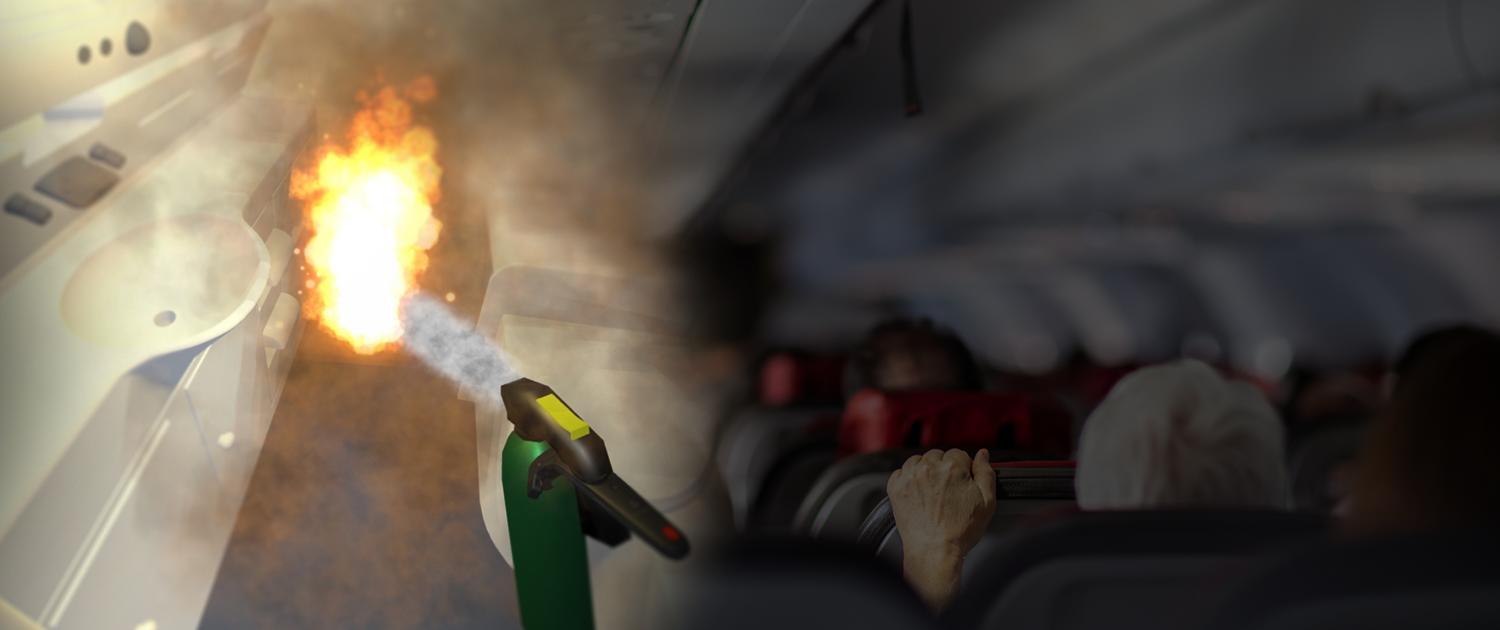 A realistic simulation of fighting a fire in an aircraft cabin. A guided experience is followed by the learner taking charge of the situation – to put out the fire and save the plane and passengers.